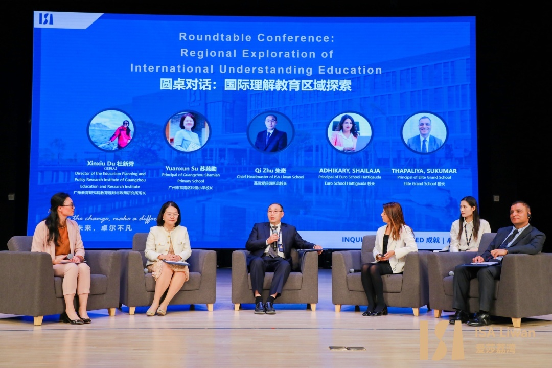 圆桌会环节,广州市教研院教育规划与政策研究所所长杜新秀女士与荔湾爱莎学校朱奇校长、荔湾区沙面小学苏苑勋校长、尼泊尔Euro School Hattigauda的Adhikary校长、Elite Grand School的Thapaliya校长一同就“国际理解教育区域探索”进行了交流。