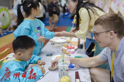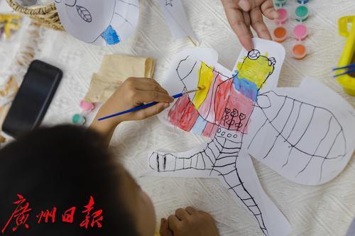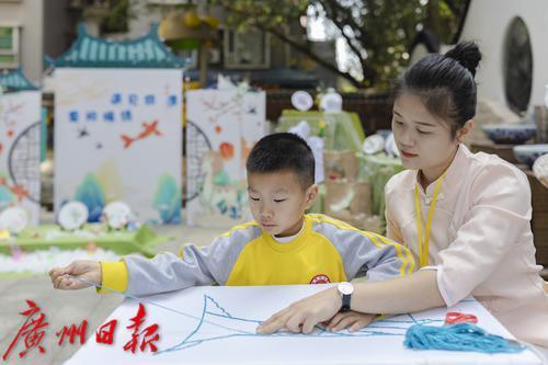 活动现场,孩子在老师的指导下刺绣“广州塔”。