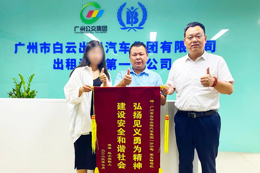 “张师傅送我到医院,分文不收,还一直陪护并照顾,我真的很感激,也很感动!他让我感受到了广州这座城市的温情!”黄小姐为张振新送上锦旗。