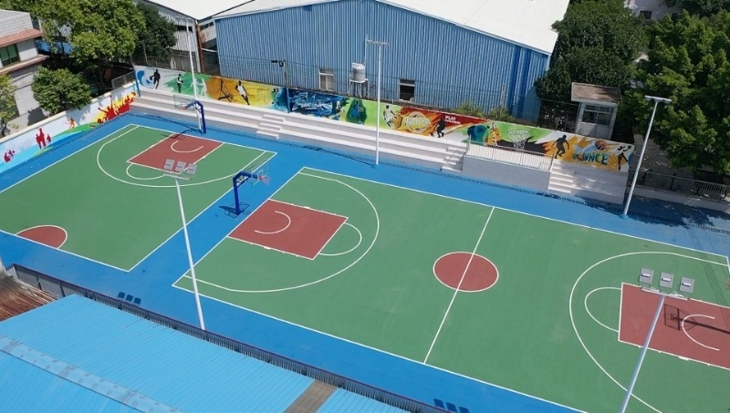 建设者针对官坦村篮球场改造工程施工“顽疾”,重新排布球场排水沟、新建球场看台、修复出入口门板、拆改球场照明灯、更换篮球架、翻新地面及围墙、重新绘制球场文化墙……施工中,严把安全、质量关,健全完善质量管理体系,严抓全过程安全管控,推动工程于2023年8月30日顺利竣工交付。