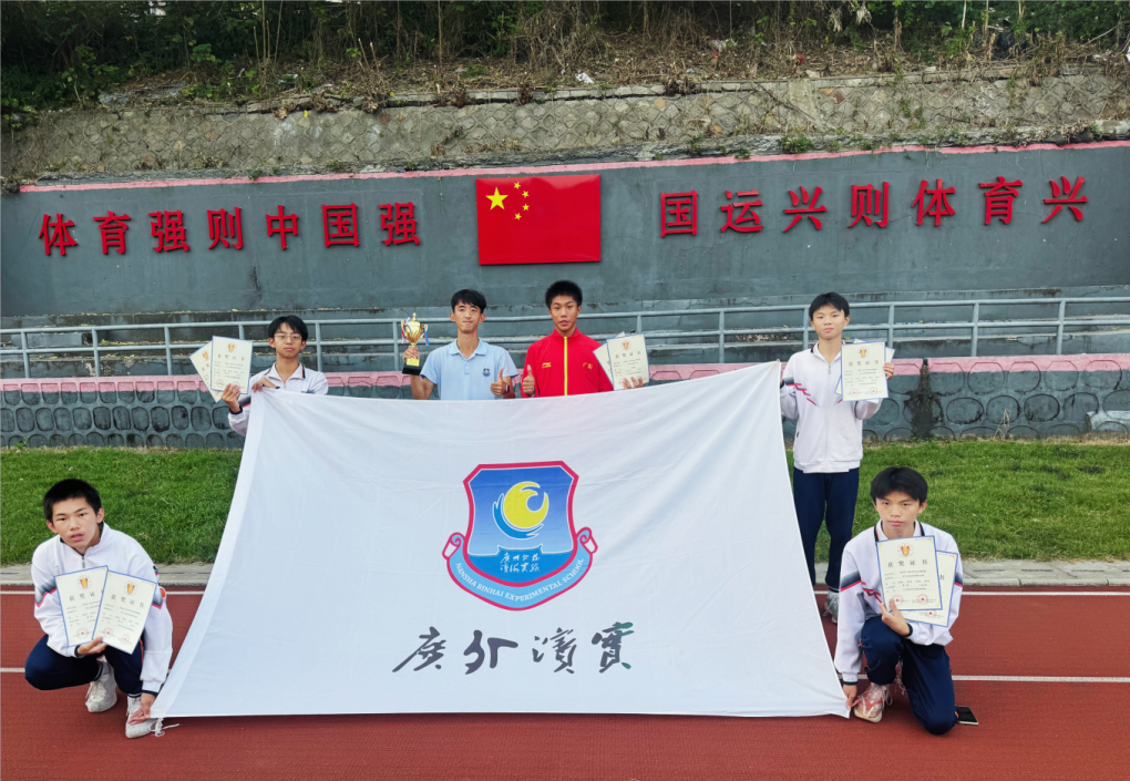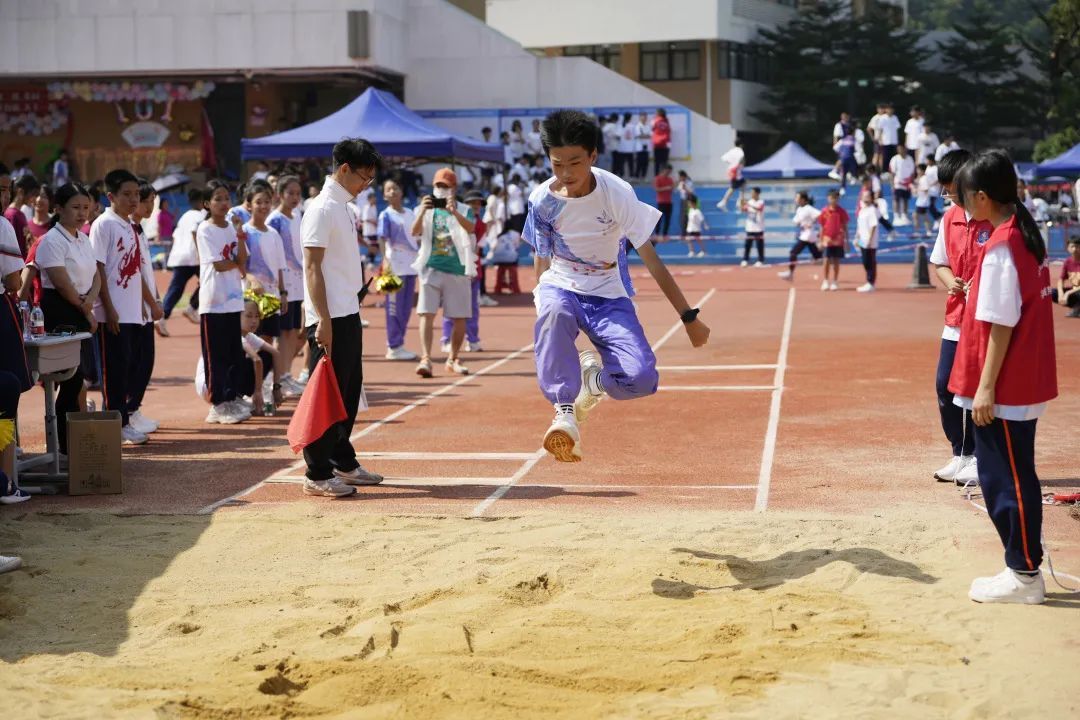 最终,在2023年广东省中学生田径锦标赛中,广州市南沙区滨海实验学校收获2金2银,获得中学乙组团体总分第七名的好成绩,创造了南沙区参加省级比赛的历史最好成绩。