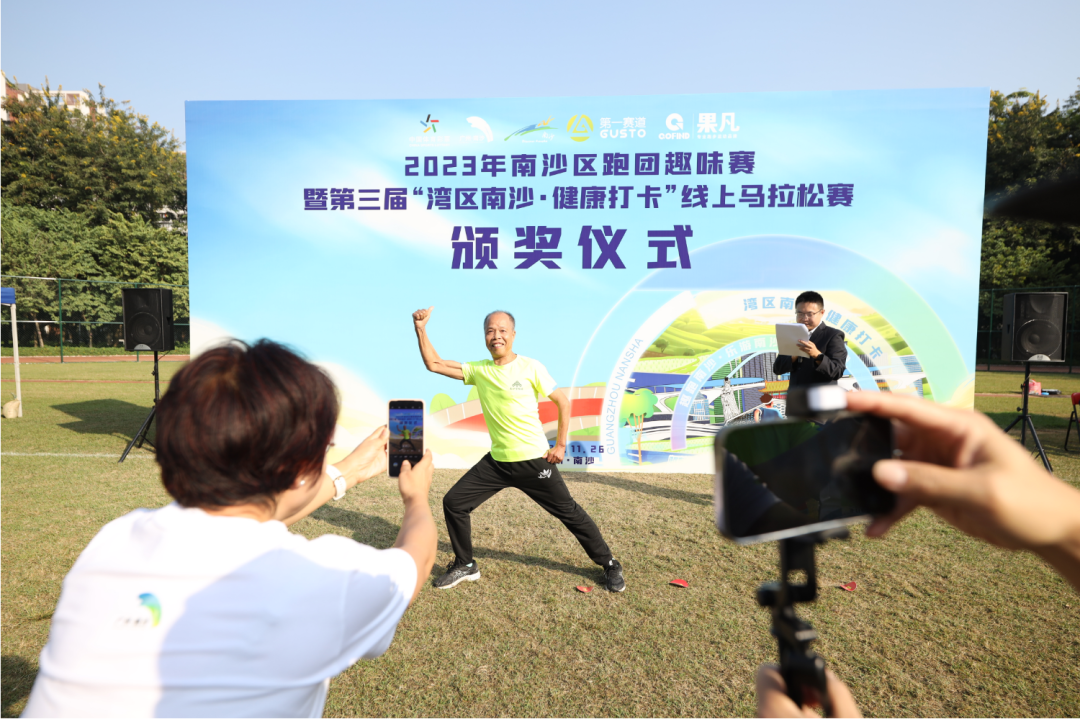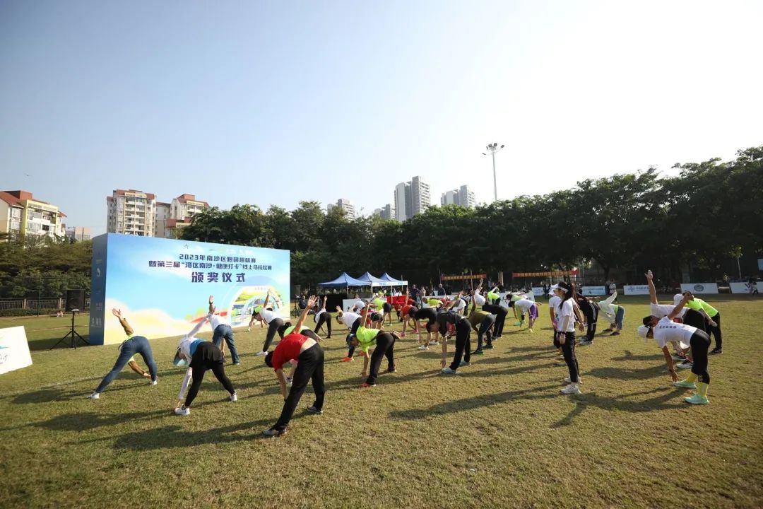11月26日,2023年南沙区跑团趣味赛暨第三届“湾区南沙·健康打卡”线上马拉松赛颁奖仪式在蕉门河社区运动中心举办。