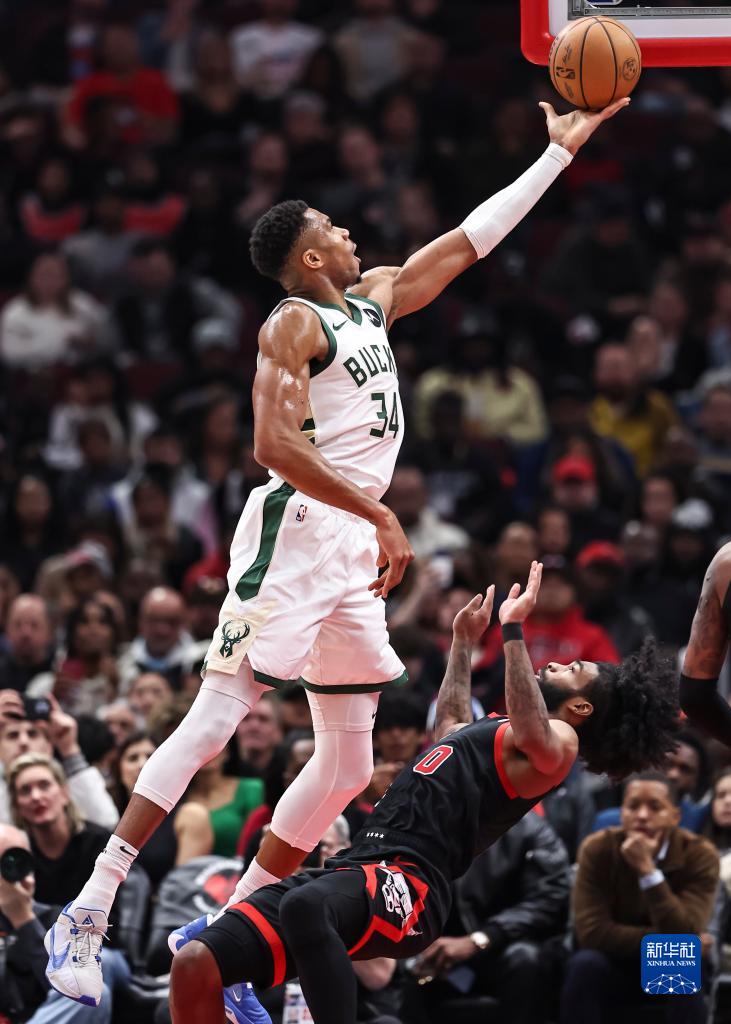 11月30日,雄鹿队球员安特托昆博在比赛中上篮。新华社发(乔尔·莱纳摄)