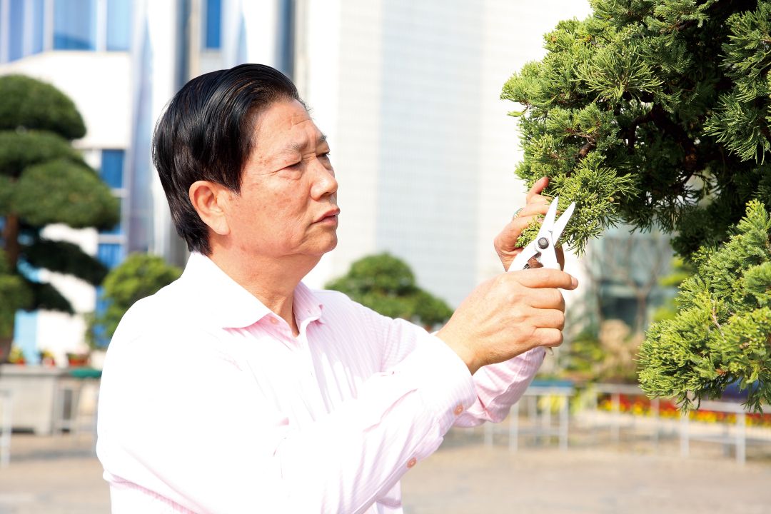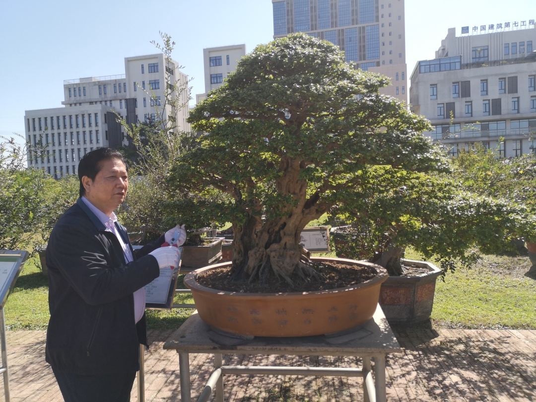 初冬的广州,惠风和畅,阳光和煦,宛若仲春。一位长者正在花园中仔细地修剪面前的盆景。伴随着他灵巧的动作,盆景树上多余的枝叶纷纷飘落,这株盆景树的造型仿佛浮现眼前——“盘坳反复,熊彪顾盼,鱼龙起伏,节竖山连”。