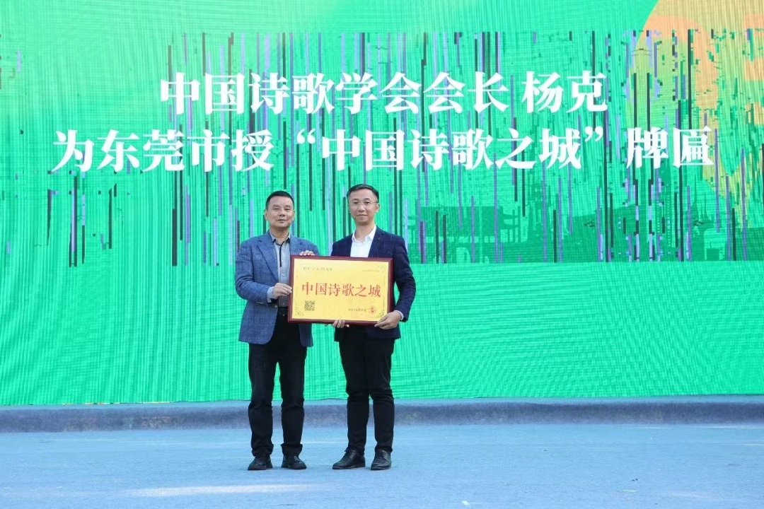 开幕式上,中国诗歌学会正式授予东莞“中国诗歌之城”牌匾,授予东莞谢岗“中国诗歌创作基地”牌匾。东莞成为全国第10个、广东首个“中国诗歌之城”。
