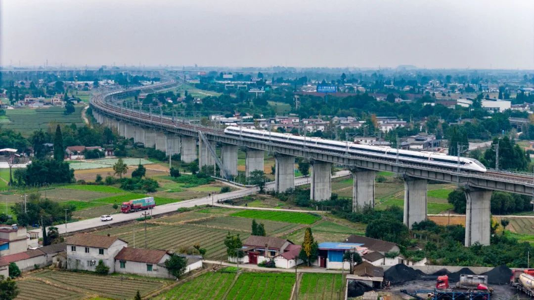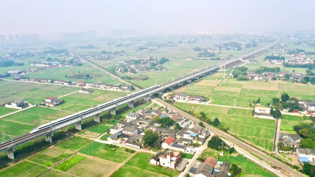 动车组列车运行在川青铁路成都平原上 @胡志强
