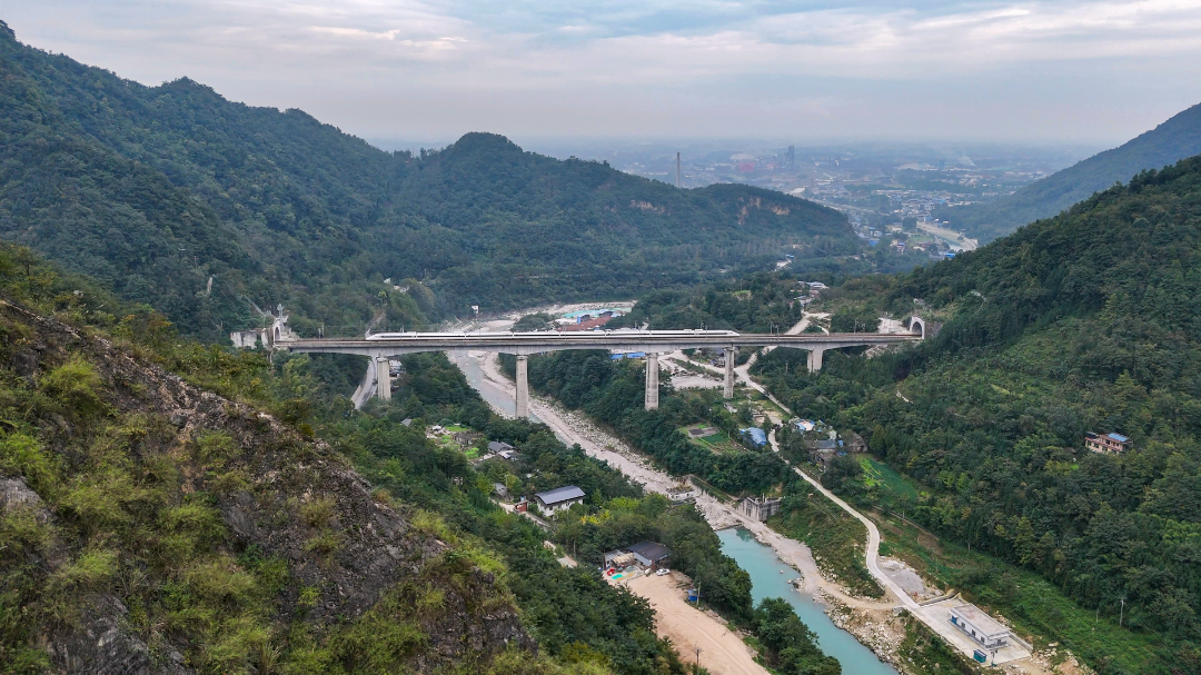 动车组列车运行在川青铁路安州站至高川站间 @龙建睿