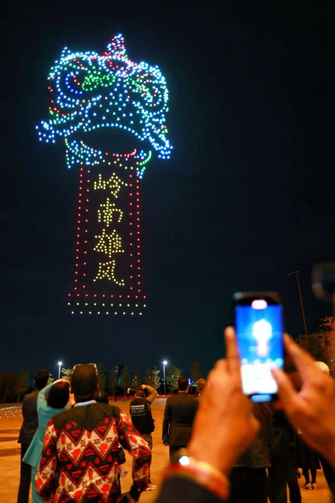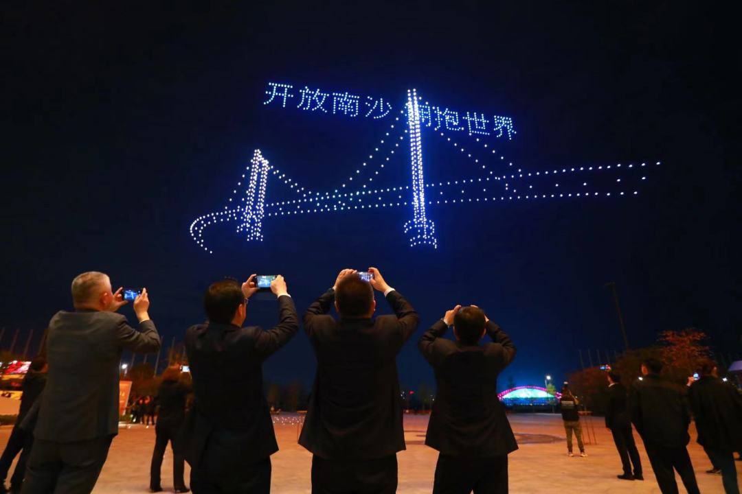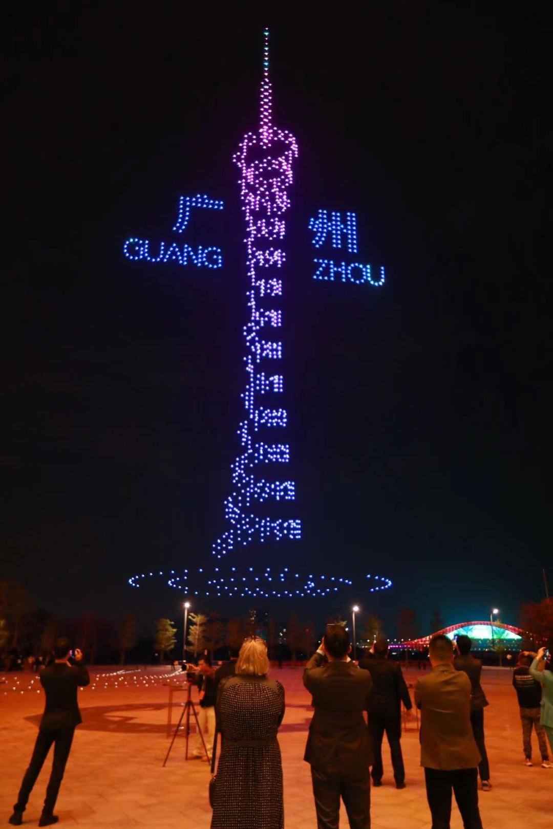 无人机表演中,既有舞狮、龙舟等传统元素,又有广州塔、开放南沙等现代元素,天空出现的“海上生明月 天涯共此时”更是让与会嘉宾感受到中文诗词的魅力和主办方的用心。
