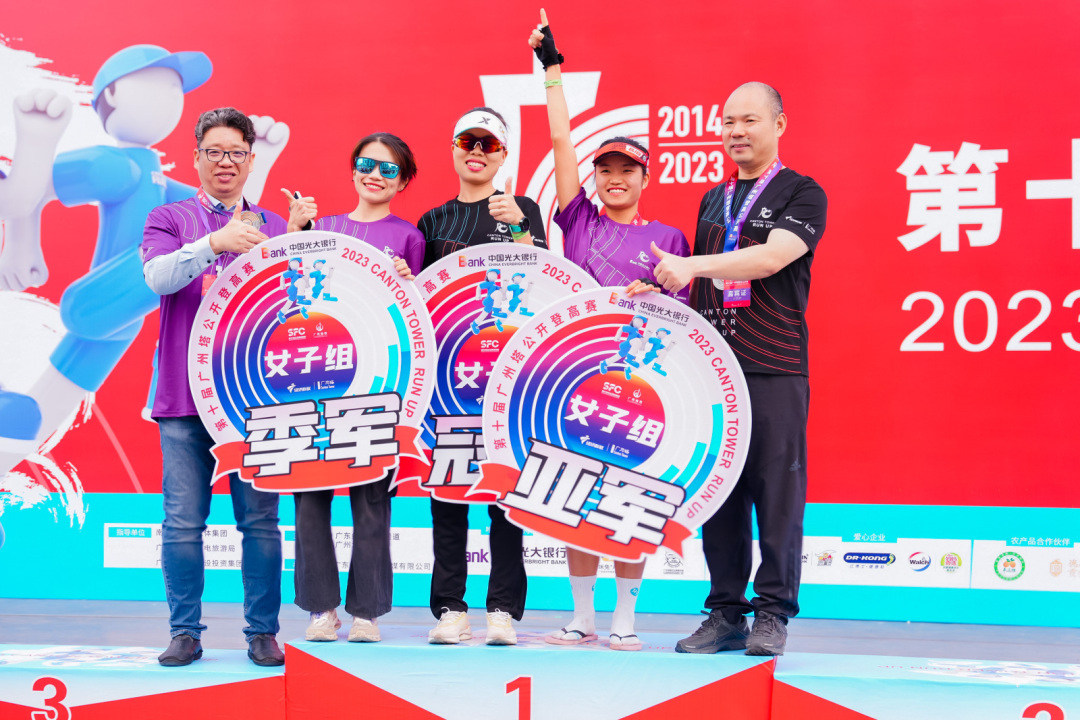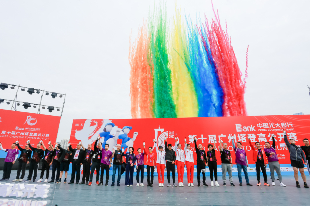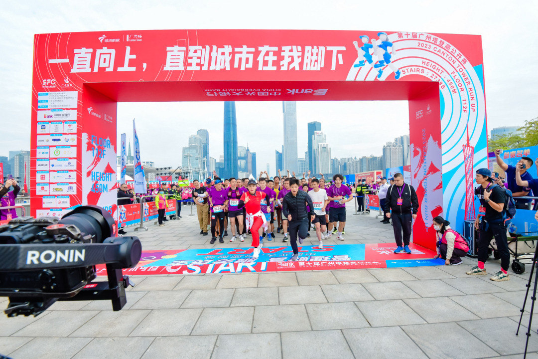 12月3日上午,由广东经济科教频道和广州塔联合主办的“中国光大银行2023第十届广州塔登高公开赛”鸣笛开跑,100米亚洲纪录保持者苏炳添,马拉松世界冠军、中国女子全马、半马纪录保持者孙英杰,雅典奥运会女子跳水冠军劳丽诗,中国首个世界赛艇冠军刘美玲,全国武术冠军张腾欧,国家队现役运动员陈洁、曾蕊等嘉宾作为冠军天团出席,数千名选手齐聚广州塔,用脚步登顶城市之巅。