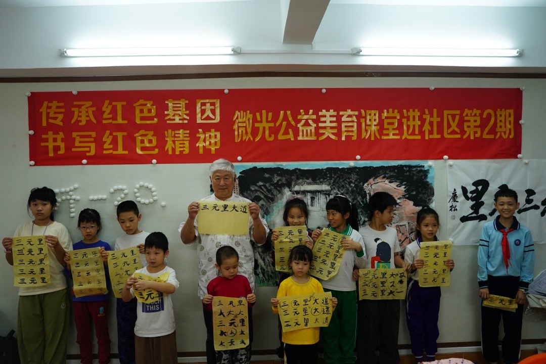 出席当天活动的有全国扶贫状元、广州市政协原主席、中国扶贫基金会第七届理事会副会长、广东省老区建设促进会会长陈开枝,广东省文联原副主席、广州市文联原主席、微光公益名誉理事长乔平,广东省旅游局原副局长、微光公益办公室主任、广州市妇女儿童福利会会长廖日香,以及三元里街党工委书记肖秀玲, 三元里街党工委副书记、办事处主任肖逍杰,三元里街党工委委员、人大工委主任彭剑英。另外还有原广西壮族自治区政府驻广州办事处一级调研员、微光公益理事长谢国强,微光公益秘书长何雨情及理事会成员和公益合作伙伴。当天下午,首先开展了传承红色基因.书写红色精神,微光公益美育课堂进社区第2期公益活动。乔平通过红色小故事,向孩子们讲述三元里的历史沿革,并从执笔、描红、书写等多个方面上了一堂精彩的书法启蒙课,孩子们兴趣盎然。