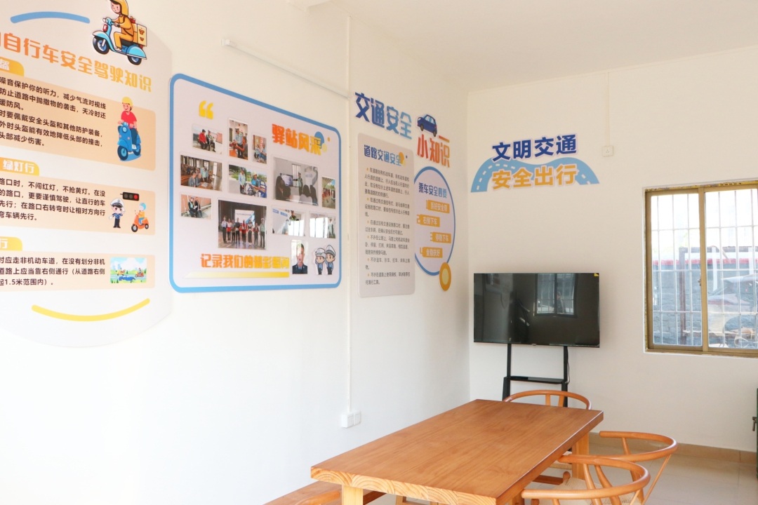 走进交通安全驿站,各类交通安全标语、交通安全小知识等元素分类设置于墙面,展架配置了交通安全法律知识手册、电视机滚动播放视频,让村民随时可以在一宗宗真实案例中接受交通安全教育。据介绍,交通安全驿站集交通安全知识宣传教育、交管业务咨询、休闲放松于一体,村民在日常出行、茶余饭后、劳作间隙,都可以进来驿站坐一坐,不仅可以休息,还可以学习到交通安全知识,树立文明交通理念。