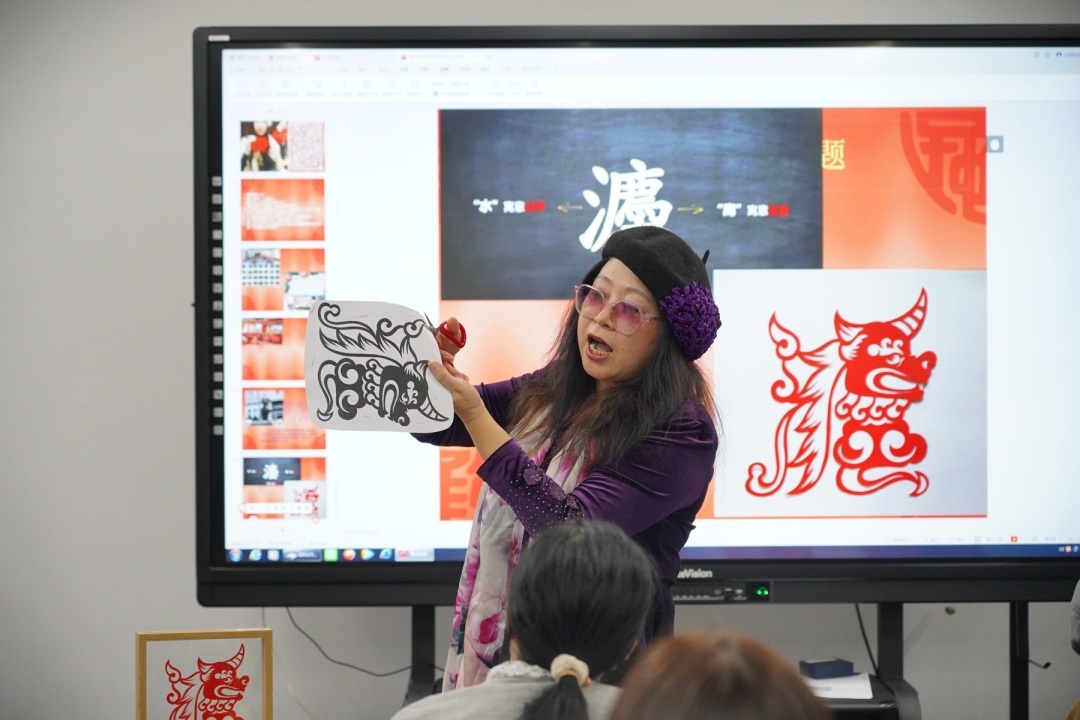 “佛山剪纸源于宋代,盛于明清时期,如今是国家级非物质文化遗产。”在“生态与法”艺术剪纸课堂上,授课老师陈新向学员们介绍了不同历史时期的艺术剪纸以及南北派剪纸的历史渊源、风格和特色,其中重点介绍了佛山剪纸的特点。在老师讲解后,学员们开始动手体验剪纸艺术,创作生态、法治主题的剪纸作品。