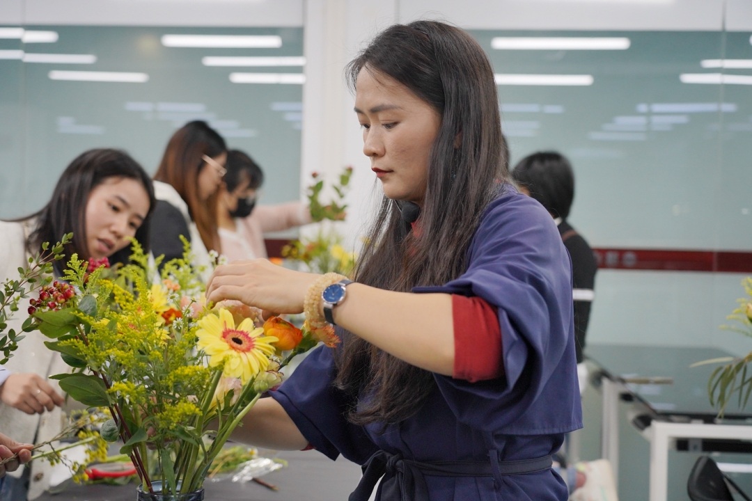 “只要有一双善于发现美的眼睛和一双巧手,生活处处都是美。”在环保玻璃瓶插花课堂上,叶志芳老师介绍了家庭在日常生活中如何变废为宝,教授常见花材养护知识与插花的小技巧。