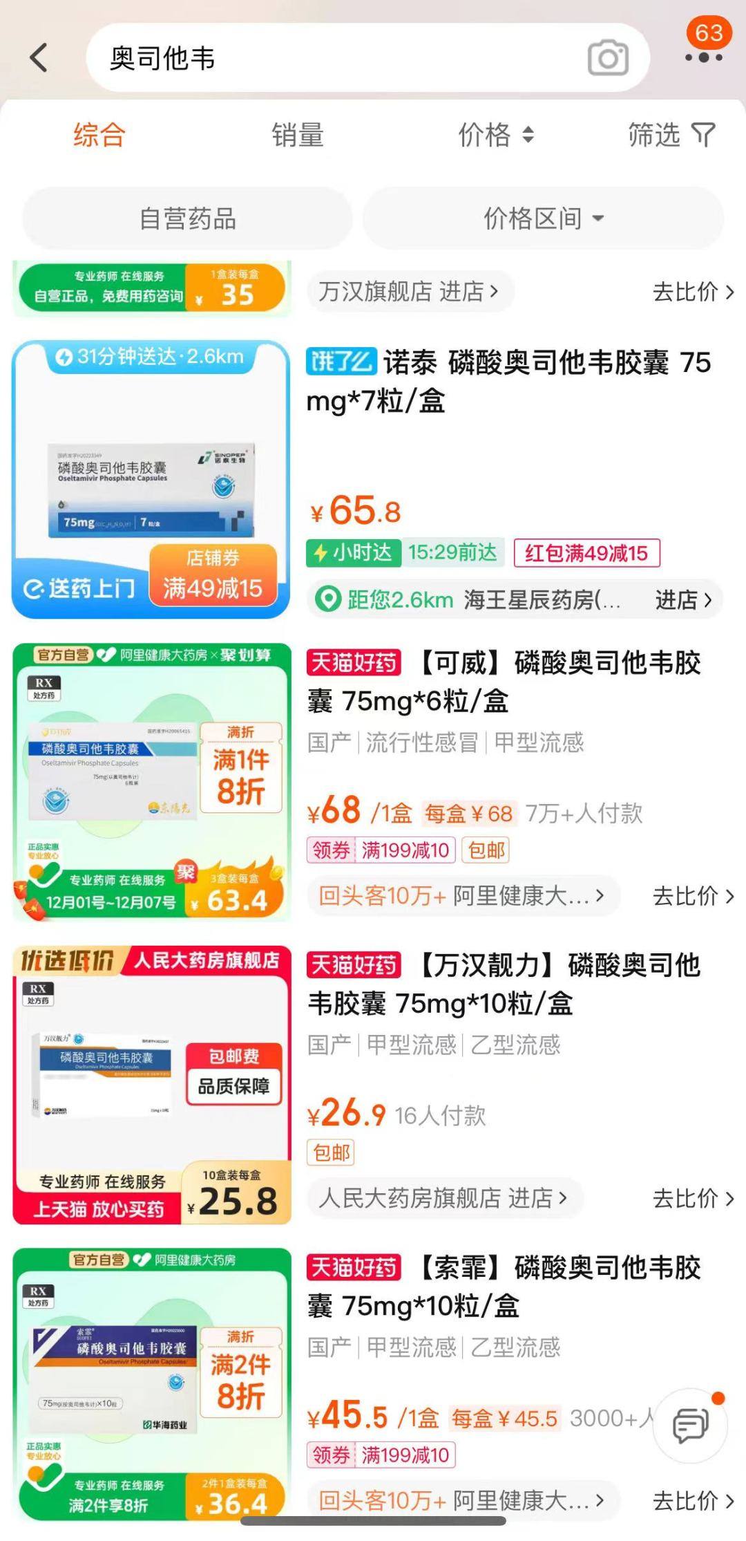 记者获悉,除了部分市场供应紧张外,奥司他韦的价差近期也引发了市场关注,个别药店售价比医院高出3倍。记者搜索发现,在电商渠道显示可即时送达的奥司他韦价格有的达到60多元一盒,而有的仅售20多元一盒,有消费者反映,奥司他韦在医院开药最划算,医院定价在20元左右。为何会出现这类情况?记者了解得知,奥司他韦今年列入了国家第七批集采药物,新剂型“奥司他韦干混悬剂”被纳入第八批国家组织药品集中带量采购后降幅达到八成。有医药经销商告诉记者,医院渠道奥司他韦价格稳定在于其是医保集采挂网招标的产物,药店受到拿货价、市场供需以及是否快速送达等多方面因素影响,价格可能出现较大不同。