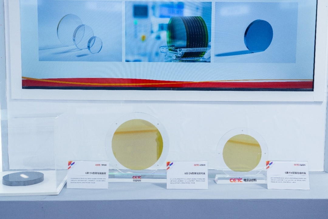 不仅如此,记者留意到,中国电科在广州车展带来的丰富展品中,还有芯片材料,包括6~8英寸硅外延,6英寸N型碳化硅晶锭、衬底、外延,8英寸N型碳化硅衬底在内的6型产品。