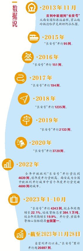 十年来中欧班列“长安号”累计开行超两万列 成为横贯欧亚的“钢铁驼队”