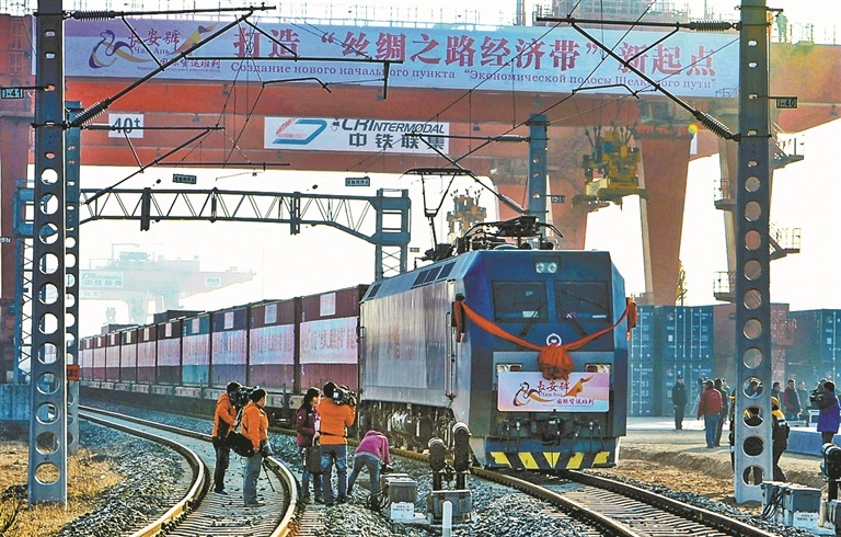 2013年11月28日,“长安号”国际货运班列从西安国际港务区鸣笛启程。西安报业全媒体记者冯炜 摄