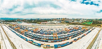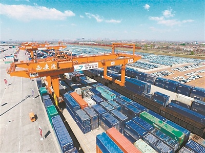 繁忙的西安国际港集装箱货站。西安报业全媒体记者王健 摄