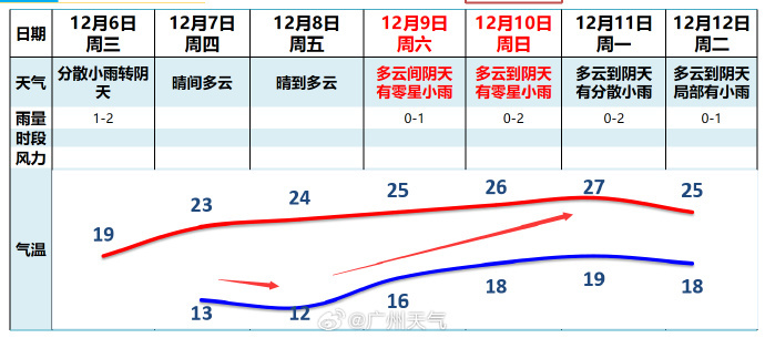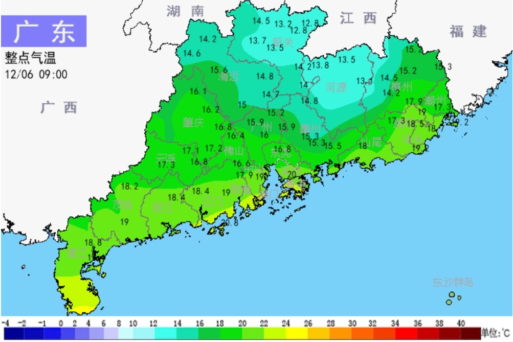 对于广州,今天的雨在中午前后会停止,傍晚前后云量逐渐减少,明天转晴,此后气温缓慢回升。受晴空辐射影响,明后两天会出现过程最低气温,夜间最低12℃—13℃,注意保暖。