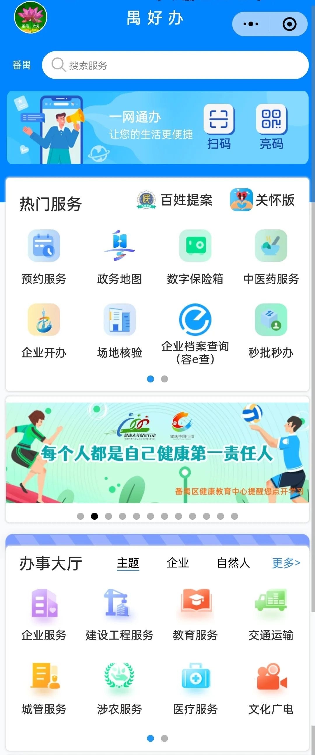 番禺区政务服务数据管理局坚持深入推进政务服务数字化转型,在深化“放管服”改革、优化营商环境方面持续发力,针对企业群众办事遇到“堵点”“难点”,推出区级移动政务服务门户——“禺好办”微信小程序。目前已上线409项政务服务事项,涵盖18个职能部门,从企业和群众实际需求出发,按行业类别、自然人和企业生命周期对政务服务事项进行汇总分类。以行业类别划分企业、建设工程、医疗等11个主题,以自然人生命周期划分身份证明、学业教育、从业资格等9个主题,以企业生命周期划分开办设立、变更登记、注销退出等。通过主题细化集成政务服务事项办事指南和办理通道,方便企业群众精准查找、便利办事。
