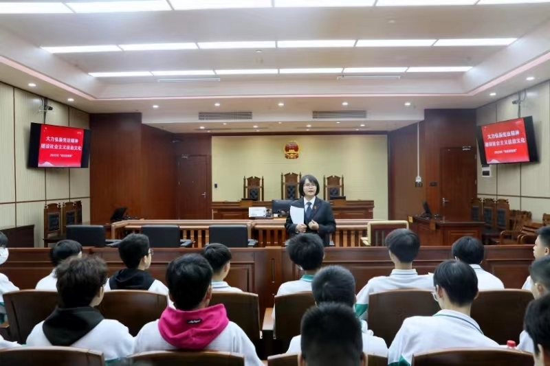 为进一步弘扬宪法精神,强化青少年法治观念,值第六个“宪法宣传周”之际,12月6日下午,佛山市禅城区人民法院联合禅城区普法办组织开展“与‘宪’同行 以法护航”法院开放日活动,邀请40多名华材职业技术学校师生走进禅城法院,让同学们“沉浸式”接受法治教育,树牢宪法和法律意识。