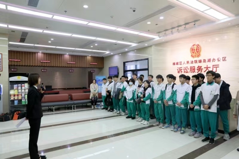 “同学们,这里就是诉讼服务中心,我们正对着的是导诉台,这边是立案窗口……”“这里是羁押室,大家可以看到墙壁上采用了软包设计,是为了防止被告人伤害自己。”当天,同学们还跟随着禅城法院干警的脚步,有序参观了诉讼服务中心、审判法庭、羁押室和警械装备室等场所,详细了解各个场所的设置及用途,对法院的日常工作有了更加直观的认识。