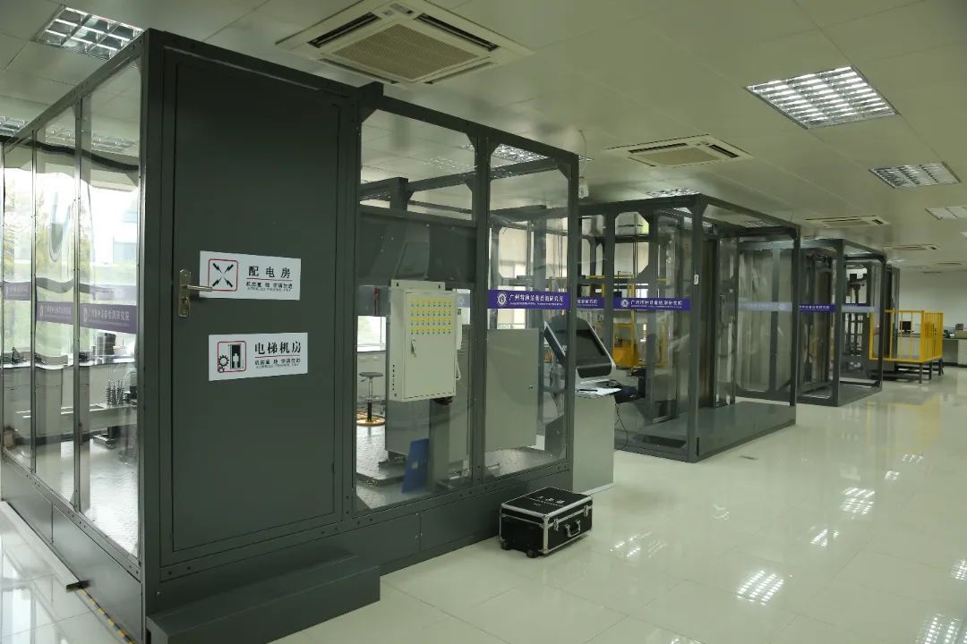 例如,广州特检院内就有一台电梯检验检测平铺式培训考核设备。这是将一台3层3站的曳引驱动电梯各主要部件“平铺”设置,能够通过信号控制电梯模拟运行的设备。该设备分为机房工位、轿顶工位、轿厢工位、底坑工位。主要用于电梯检验人员培训及考核,可以培训97个项目,通过该装置进行人员培训及考核,能有效提高检验人员实操技能和隐患发现能力。