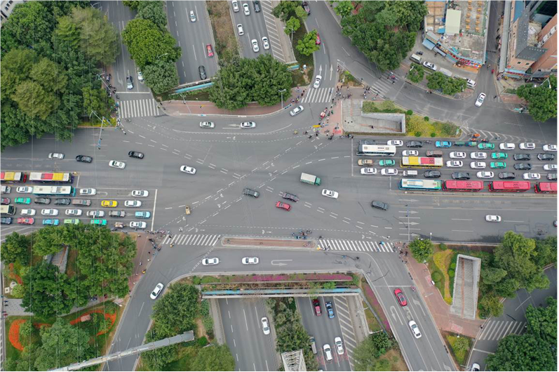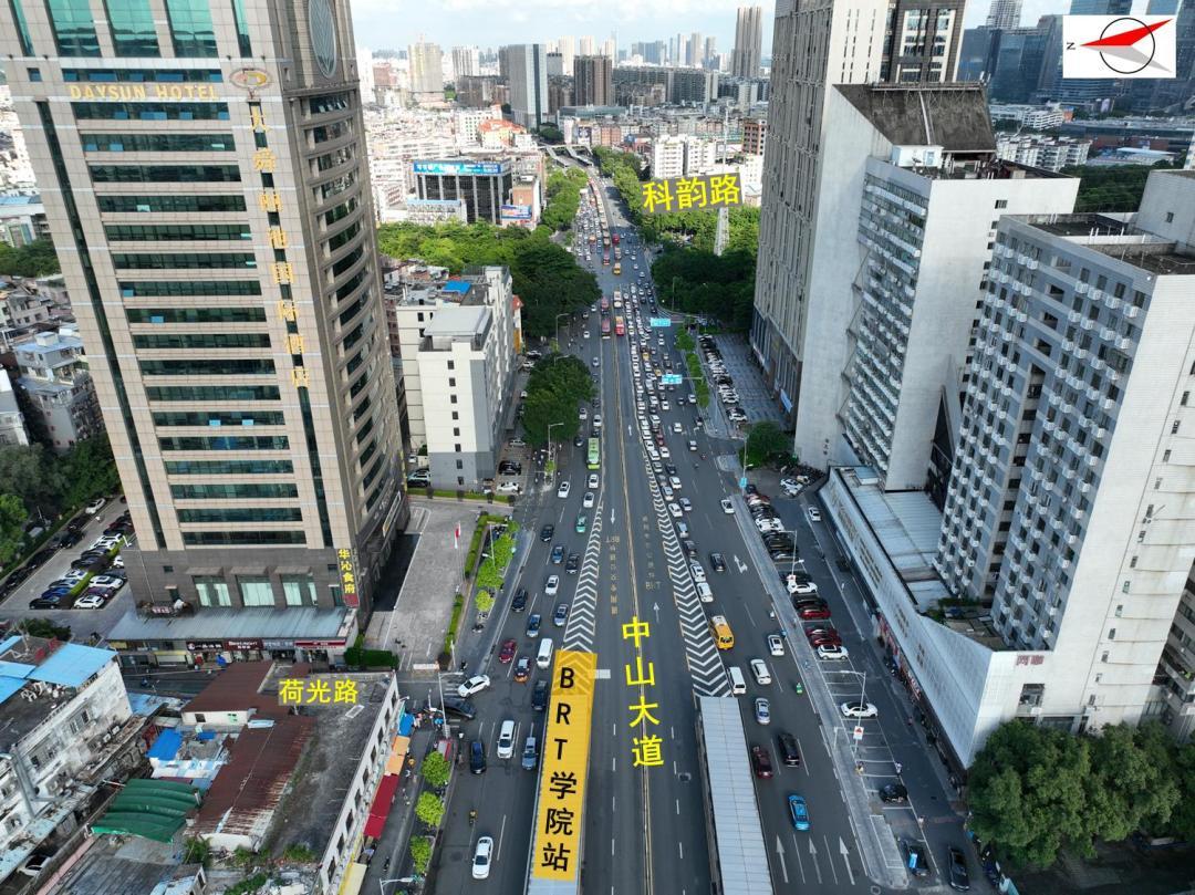 中山大道是城区东西向的重要主干道,路中设有快速公交专用道(BRT),沿线有大量的住宅小区以及学校、商圈,交通繁忙。