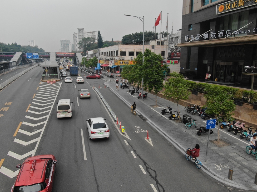 经充分研究,相关部门对中山大道进行了优化改造,通过压缩机动车道宽度,并将最右侧机动车道改为非机动车通道,设置机非分隔护栏和示警桩;优化荷光路口、上社横街路口等路口的非机动车通道,配套设置非机动车指引标志,保持非机动车通道的连贯性;精细化调控路口的信号配时方案,保障交叉口各时段各方向车流平衡,保障交通安全有序。