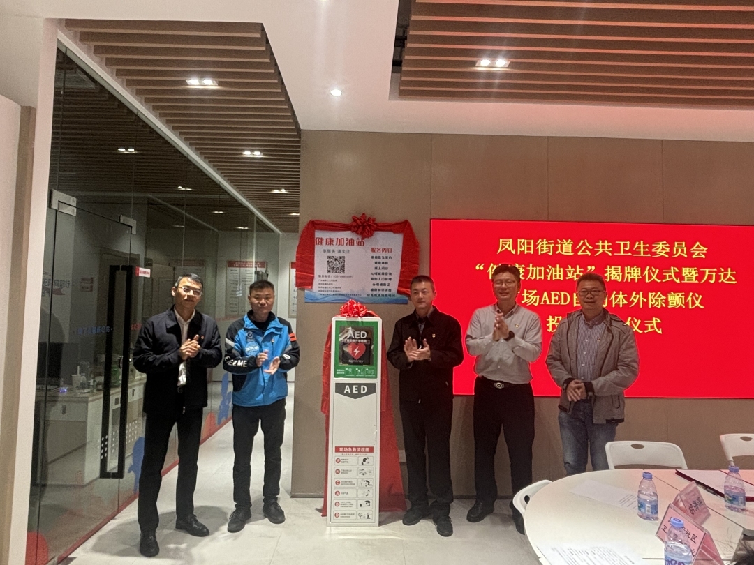 此外,凤阳街公卫委还在万达广场投放一台AED自动体外除颤仪,加强万达商圈应对突发健康事件的处置能力。
