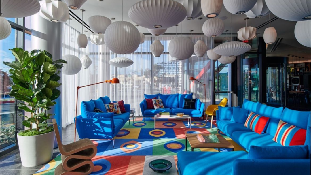 citizenM Menlo Park酒店由国际知名连锁潮牌酒店citizenM开发,位于美国加州旧金山硅谷,坐落于著名互联网公司Meta(原名Facebook)总部园区。该酒店共5层,由161间模块组成。每间客房设置有智能系统,可用平板电脑控制房内的电视、暖气、空调、窗帘和灯光。