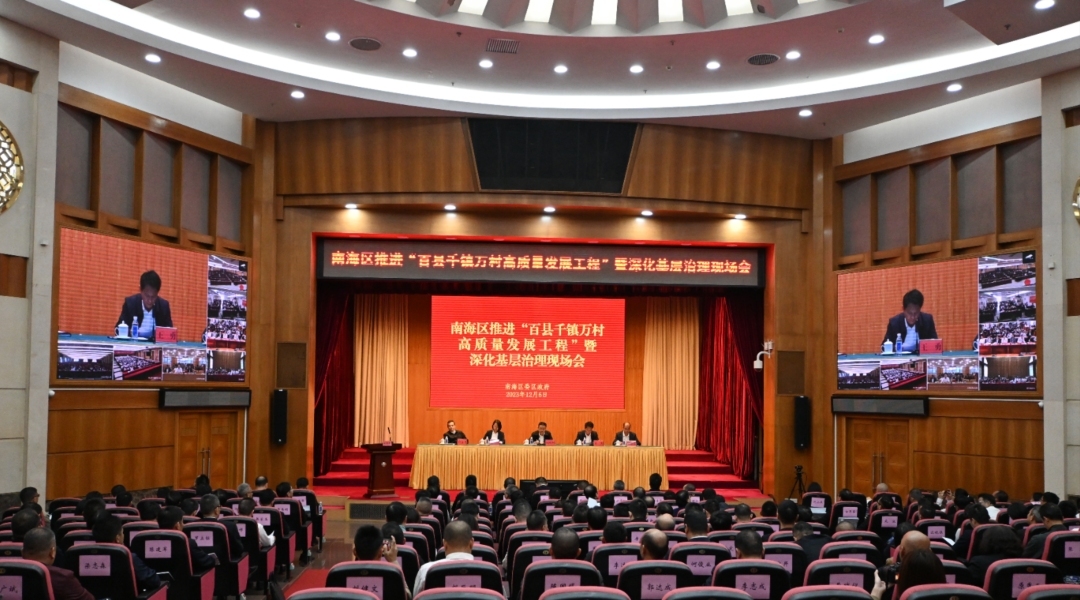 12月6日下午,佛山市南海区召开推进“百县千镇万村高质量发展工程”暨深化基层治理现场会,并以电视电话会议方式覆盖全区各镇(街道)、村(社区)、经济社。本次会议对近年来扎实推进“百千万工程”和基层治理改革工作中涌现的一批先进典型进行表彰,其中包括党建引领基层治理“标杆活力党支部”20个,经济社“有为书记”“先锋社长”50人,“创熟”示范社区20个、“创熟”示范标兵20人,以及“创熟”优秀案例20个。