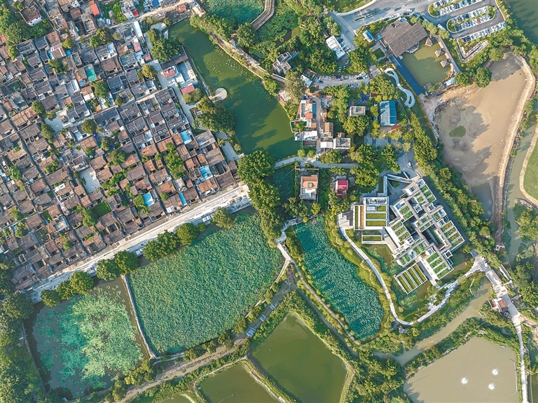 在塱头古村修建的春阳台艺术中心等各种艺术文化设施,让古村更具现代化气息。 (图/广州日报·新花城记者:莫伟浓)