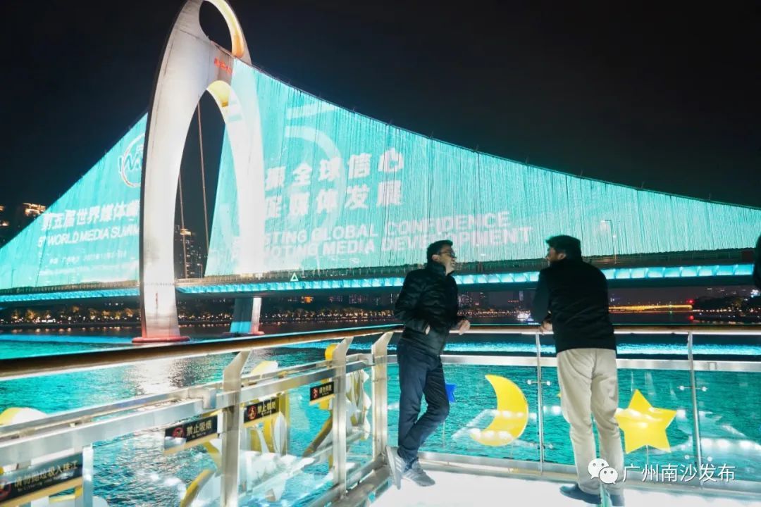 当游船经过猎德大桥,“第五届世界媒体峰会 提振全球信心 共促媒体发展”的标题挂满大桥。外媒们纷纷拿起手机,邀请小南为他与桥拍合照,为第五届世界媒体峰会的广州奇妙之旅划上完美的句号。