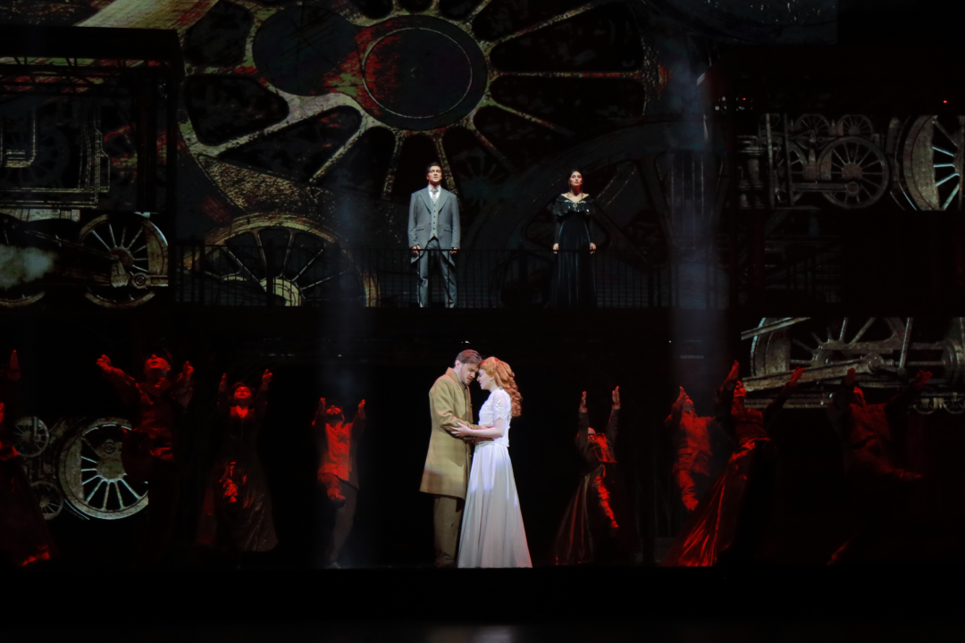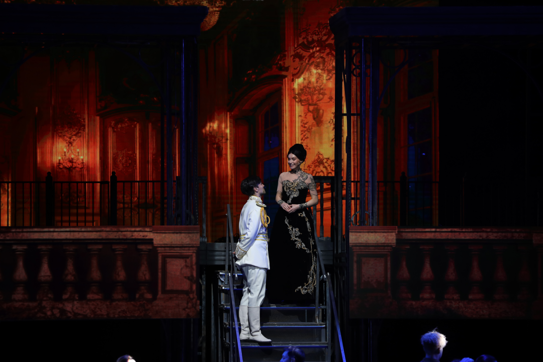 音乐剧以著名的火车场景启幕,通过朋克风的钢架和火车头贯穿全场,在充盈灯光和音乐中创造出令人印象深刻的“多媒体谜题”,更在结局前,为观众带来令人难以置信的壮观和戏剧性的高潮。花样“滑冰”、现代舞、芭蕾舞、宫廷舞以及俄罗斯民族舞蹈,更有纵贯古典、流行和摇滚的40余首唱段,这一切都注定会带来视觉和听觉上的双重盛宴,用炙热而充满张力的音乐剧语言探讨着爱情与死亡、自由与命运的哲学命题,引发观众的普遍共情。九个移动屏幕、重达数吨的金属结构和几百个照明装置在舞台上组合在一起,打造出真实的场景,从19世纪的歌剧院到溜冰场、豪华的宫殿到夏季的乡村,让观众身临其境。