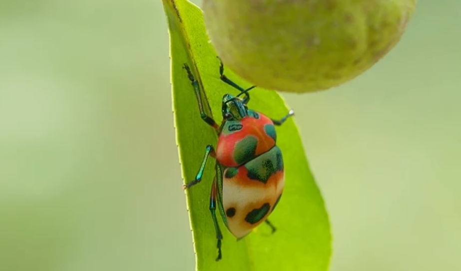 华南国家植物园不仅是一个欣赏各种植物的好地方,也是一个观察动物世界的理想场所。在这个季节,如果你细心观察,你可能会发现一种非常漂亮的甲虫——油茶宽盾蝽。