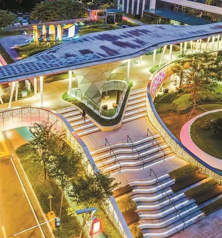 作为全市首个近零碳排放示范社区共建示范试点项目,前不久,甘泉路近零碳示范社区获联合国副秘书长盛赞“这个社区公园可以命名为联合国人居署公园”。据悉,甘泉路近零碳示范社区包含1个智慧立体车库、1个近零碳社区公园,以及设计大厦的节能改造。在设计阶段就请居民参与,全周期贯彻低碳理念,共同缔造美好社区。建成后实现所有新建或改建项目均达到绿色建筑标准,实现片区人居环境的整体性重塑,在大大改善周边居民生产生活质量的同时,也将成为深圳碳达峰、碳中和绿色发展事业的教育、实践及宣传基地。