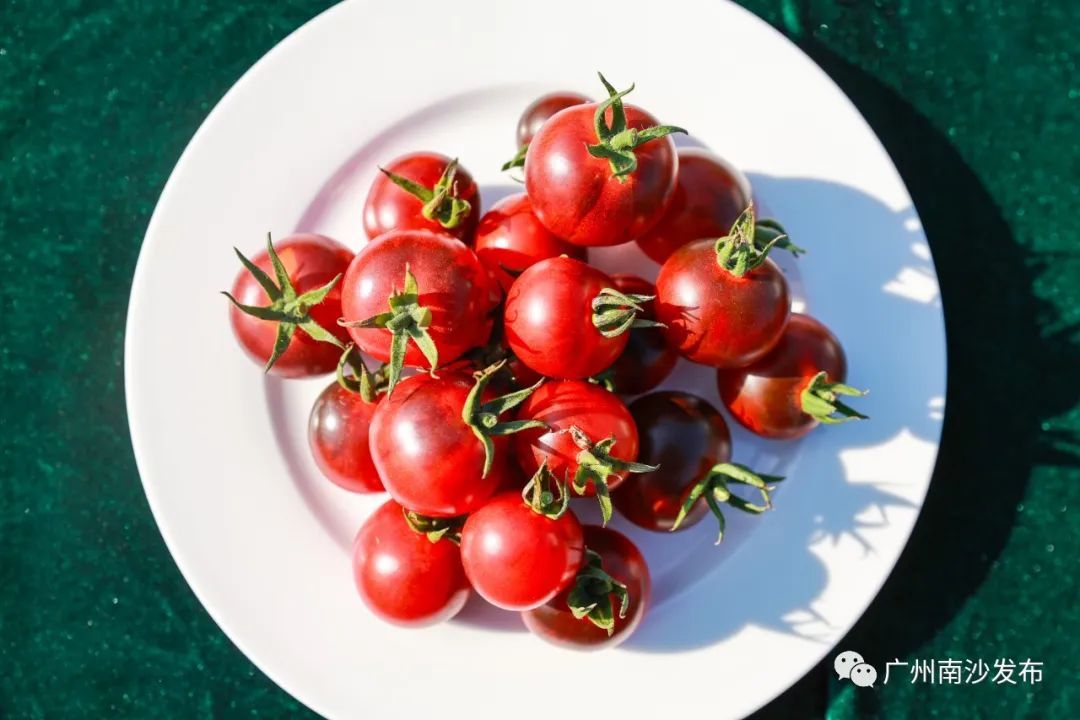 小南漫步南沙基地的番茄展区看到,藤蔓上的大番茄像节日里的彩色灯笼装点着此次展会;红的、紫的、粉的、橙的、黄的等各色樱桃番茄在阳光照射下晶莹剔透,形成一道美丽的风景线。