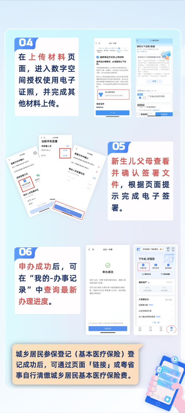 在广东省“出生一件事”集成化办理上线粤省事App后,钟先生第一时间就选择了手机移动端登录粤省事界面相关办事申请,完成提交和对应选项的选择后,就可以一次性解决孩子入户、参保、疫苗接种等多个事项。“这样方便多了。”