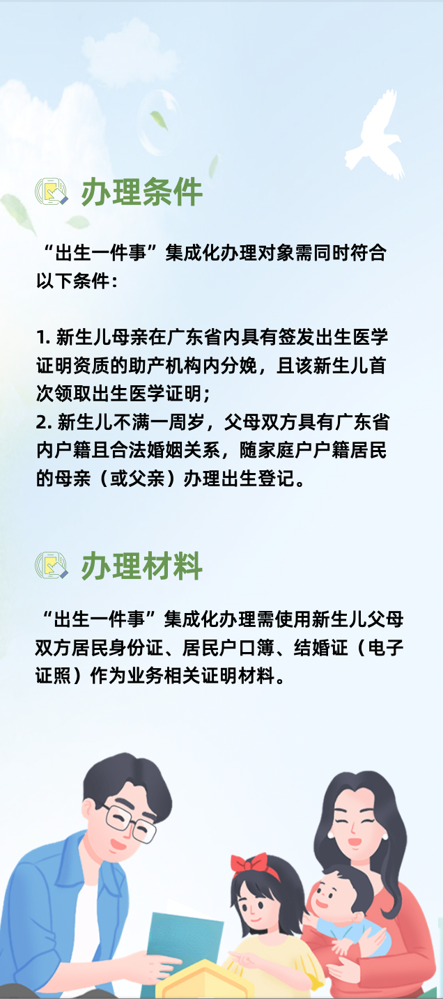 广东省卫生健康委党组成员、副主任刘元亮介绍,“出生一件事”集成化办理使用,有三大特点: