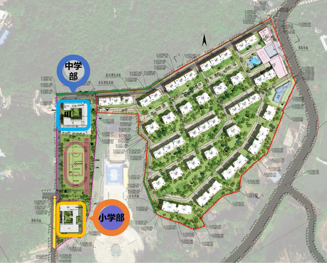 作为广州天河外国语教育集团成员校之一的九年一贯制学校,该校校区位于悦景路北侧,帝景山庄西区(项目名称:合生缦云)西侧,规划为45班(初中27,小学18),总用地面积20209平方米,总建筑面积约23411平方米。