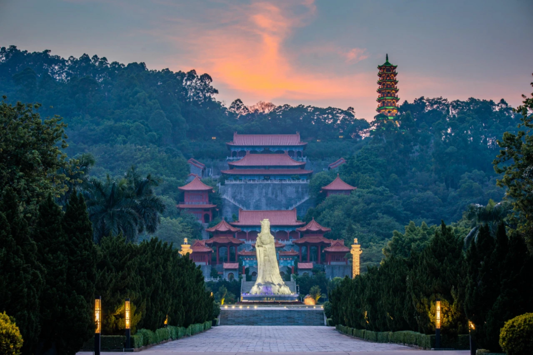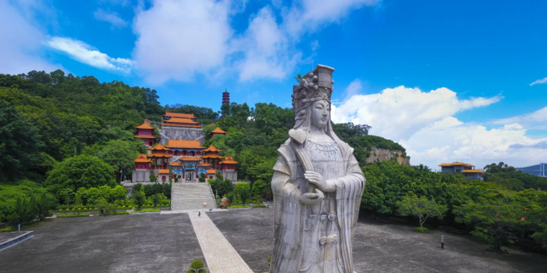 南沙天后宫坐落于大角山东南麓,地处粤港澳大湾区之心,濒临珠江出海口的伶仃洋。
