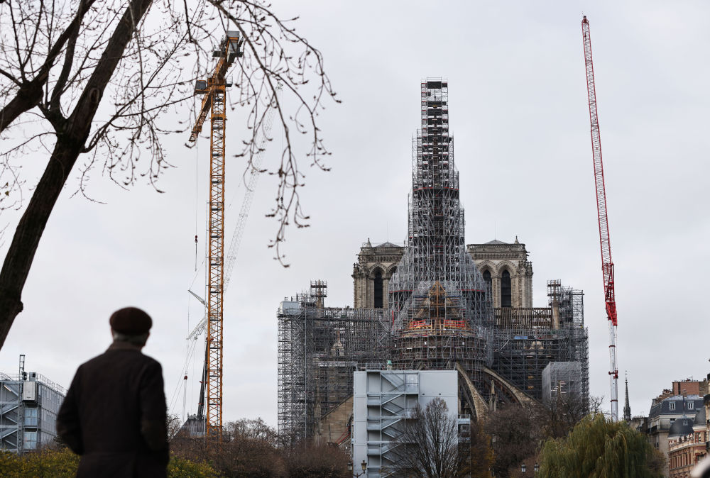 巴黎圣母院始建于12世纪,是法国最具代表性的古迹之一。2019年4月15日,巴黎圣母院的屋顶和塔尖在突发大火中被烧毁,但主体建筑得以保存。法国议会两院曾通过法案,要求重建工作确保巴黎圣母院恢复原貌。2020年,巴黎圣母院大火一周年纪念日时,马克龙承诺5年内完成巴黎圣母院修复工作。