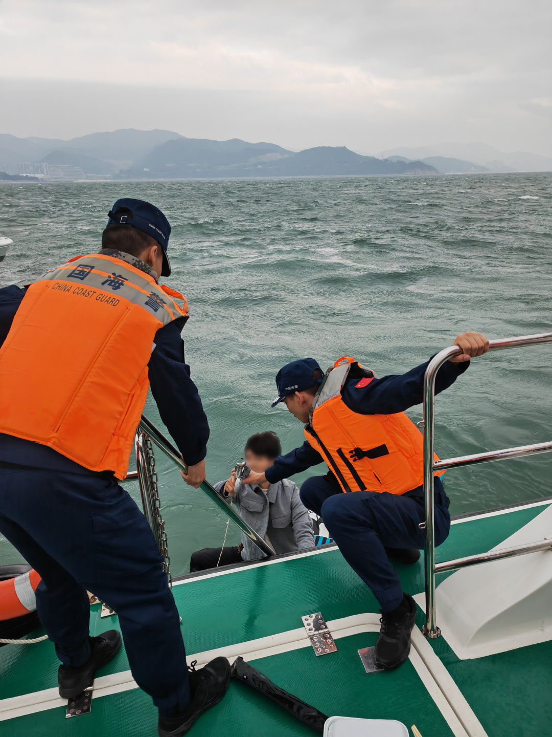 执法员喊话沟通后,立即调整艇位实施救援,成功将该名游客救起,并将其桨板装具等搬运至摩托艇。经初步检查,游客身体状况良好。海警执法员将该游客送达盐田工作站码头后,对该名游客进行安全教育,游客对海警执法员的救助一再表示感谢。