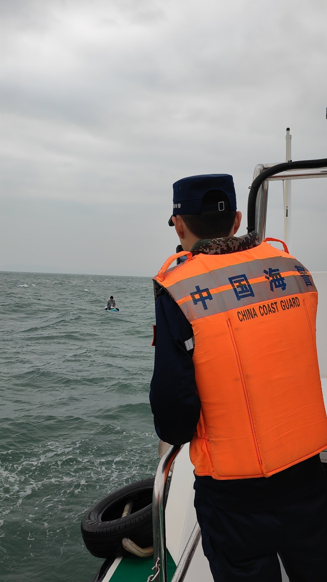 12月1日7时许,深圳海警局盐田工作站接报警称,大梅沙洲仔岛附近有游客使用桨板出海海钓后,因海上风浪太大无法靠回岸边,请求海警前往救助。接警后,该站立即启动应急预案,迅速派遣摩托艇前往事发海域进行搜救。8时整,海警执法员发现一名游客跨坐在桨板上呼救。