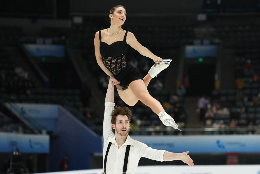 ▲12月8日,意大利组合孔蒂(上)/马奇在自由滑比赛中。(新华社记者 鞠焕宗 摄)