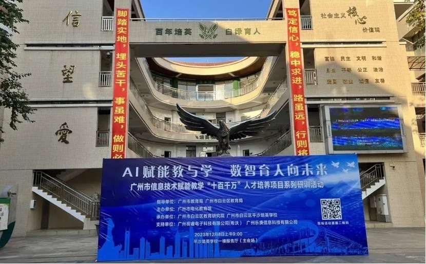 12月8日,由广州市教育局、广州市白云区教育局指导,广州市电化教育馆主办,广州市白云区教育研究院 、广州市白云区平沙培英学校承办的广州市信息技术赋能教学“十百千万”人才培养项目系列研训活动之“AI赋能教与学 数智育人向未来”展示交流活动,在白云区平沙培英学校举行。