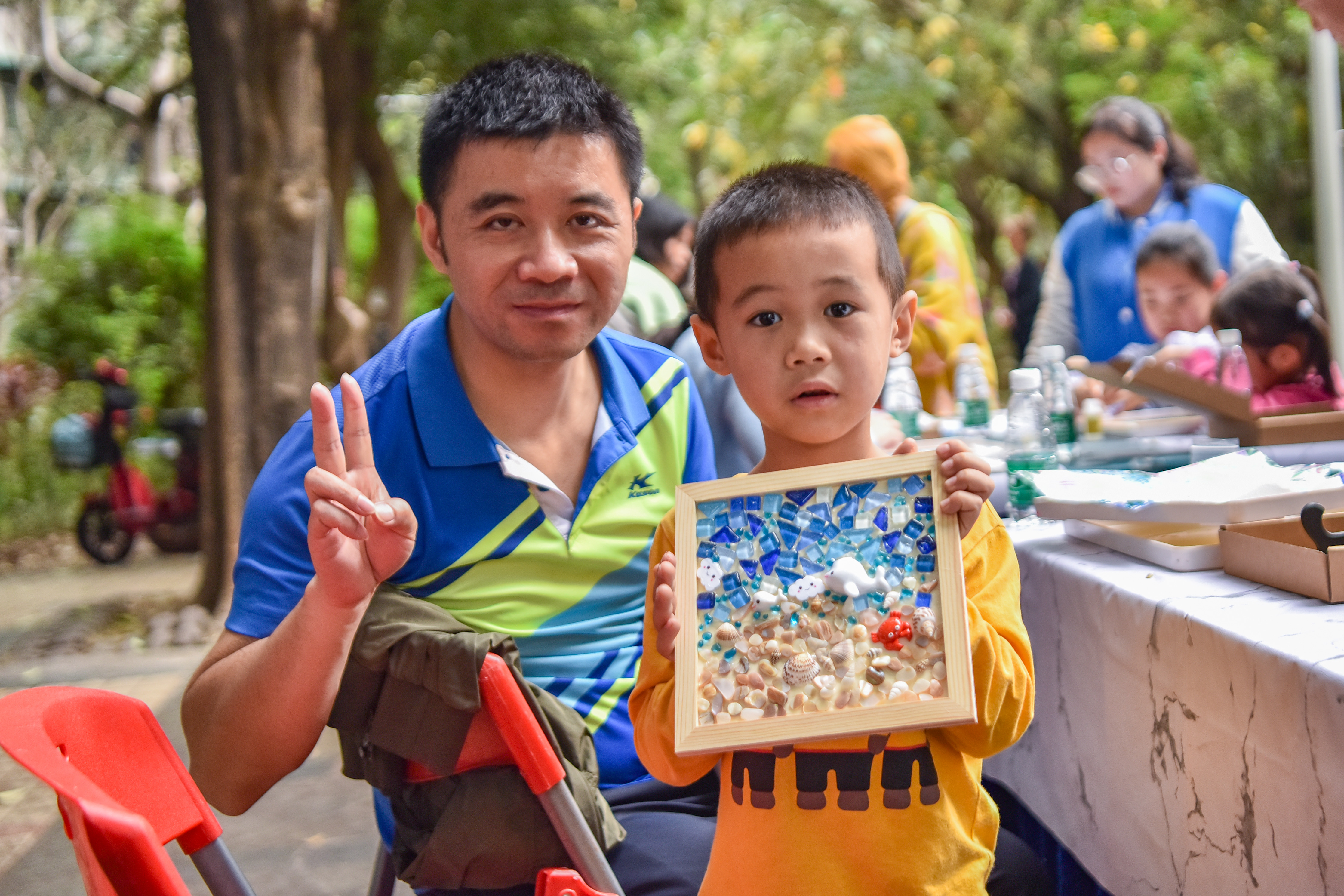呆萌的小猫、蔚蓝的海洋……活动现场,亲子家庭利用马赛克瓷砖设计拼贴画,一幅幅生动而富有创意的作品很快被创作出来。后续,主办方将结合三泰公园场地设计,选取儿童活动区域景墙进行拼贴画展示。孩子们天马行空的构想将为老旧小区改造增添一抹斑斓的色彩,这正是“大众创”活动希望传达的理念:人人可当社区设计师。
