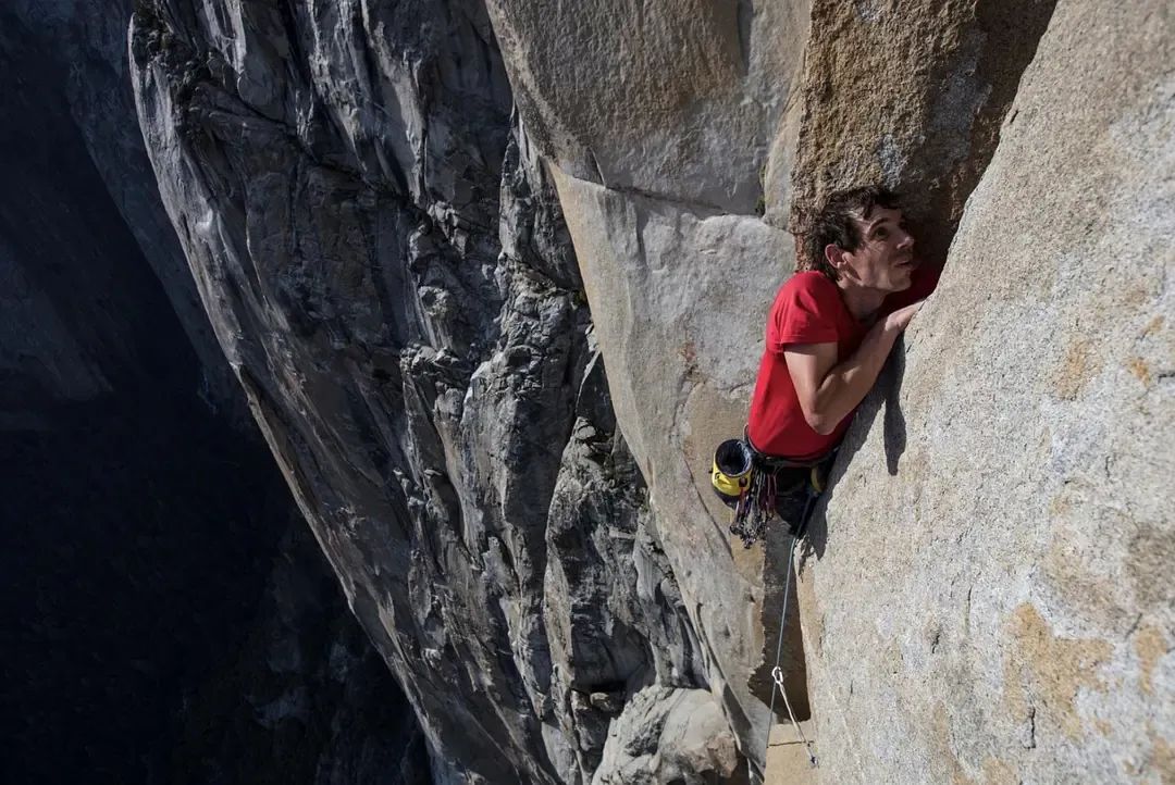 2017年6月3日上午9点28分,亚历克斯徒手登顶优胜美地900多米的酋长岩,用时3小时56分。没有绳索、不带保护装备,仅凭双手、双脚和一袋镁粉,他创造了攀岩运动的“登月时刻”。