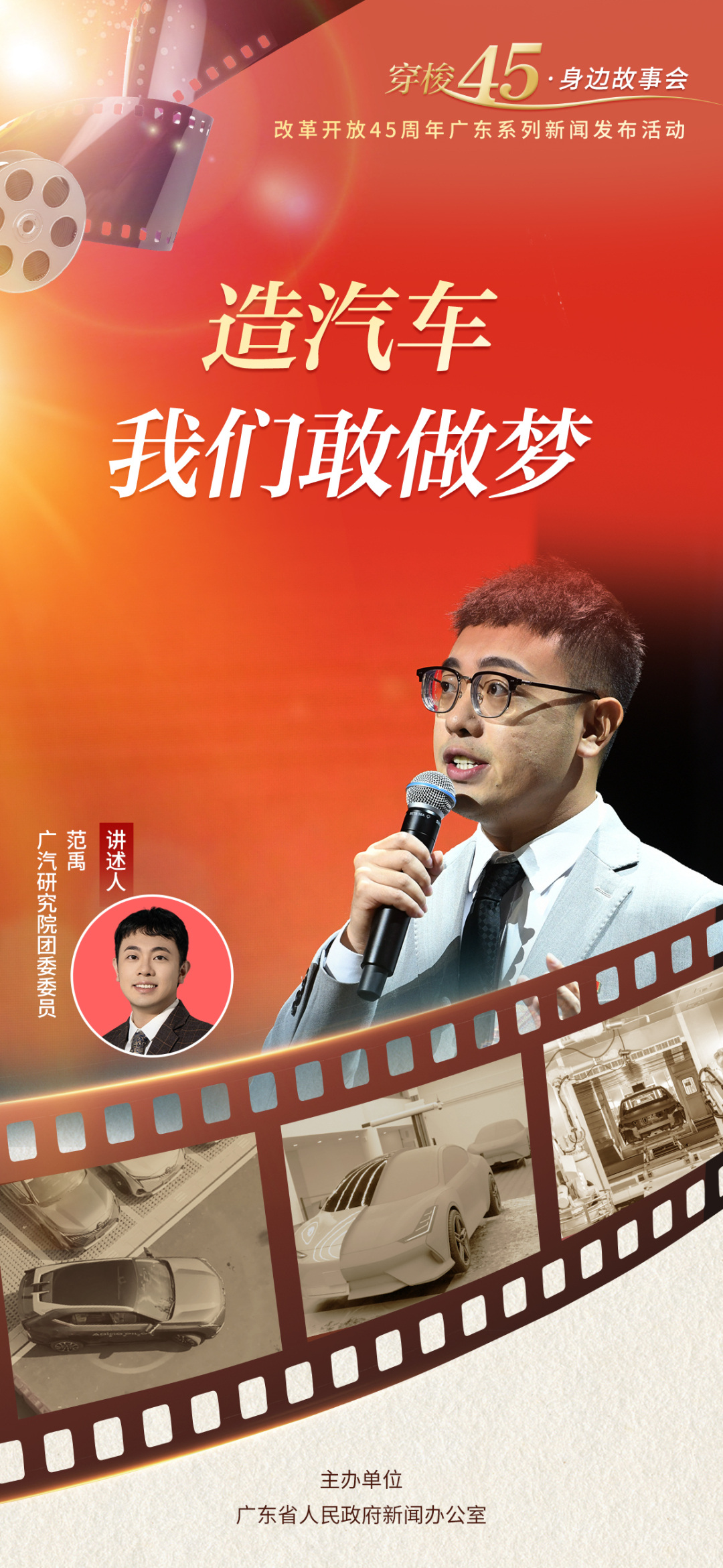 范禹是广汽集团的一名“90后”职工,也是广汽研究院一名基层接待讲解员。作为广汽科技创新的一扇窗口,他现场分享了广汽的高质量发展故事。